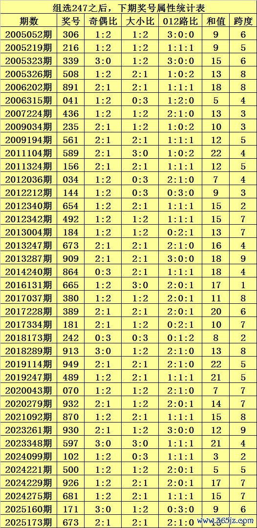 上期记忆:胪列三第2025284期奖号为:247,类型:组六,历史上直选号码247出现了8次,组选号码247出现了40次。
